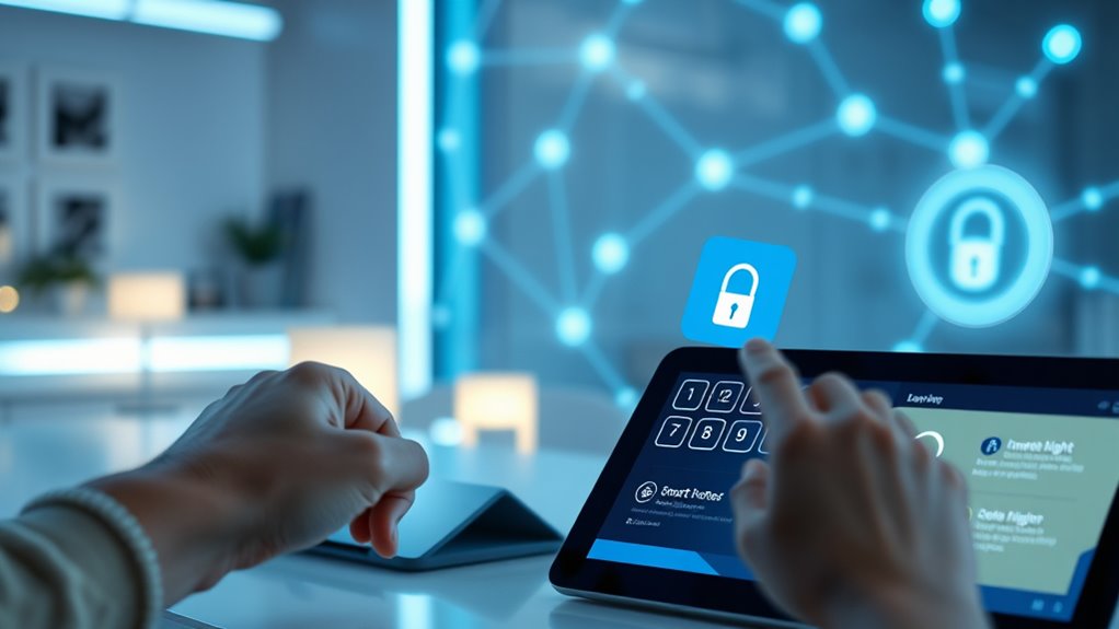 Additionally, staying informed about AI security vulnerabilities can help you better understand potential risks and protect your connected devices from emerging threats. To implement 2FA effectively, start by choosing a method that best fits your devices and lifestyle. Biometric verification offers speed and ease but should be supplemented with backup options like codes. When setting up 2FA, follow the prompts carefully and verify that your biometric data works correctly. Once enabled, always keep your backup codes secure and accessible, but away from prying eyes. Regularly review and update your security settings, especially if you change phones or devices, to ensure your backup codes are current and functional. By integrating biometric verification and backup codes into your 2FA routine, you create a robust shield against cyber threats, protecting your IoT ecosystem from unauthorized access and potential breaches. This proactive approach not only keeps your devices safer but also gives you peace of mind knowing your connected home or office is better defended against intrusion.