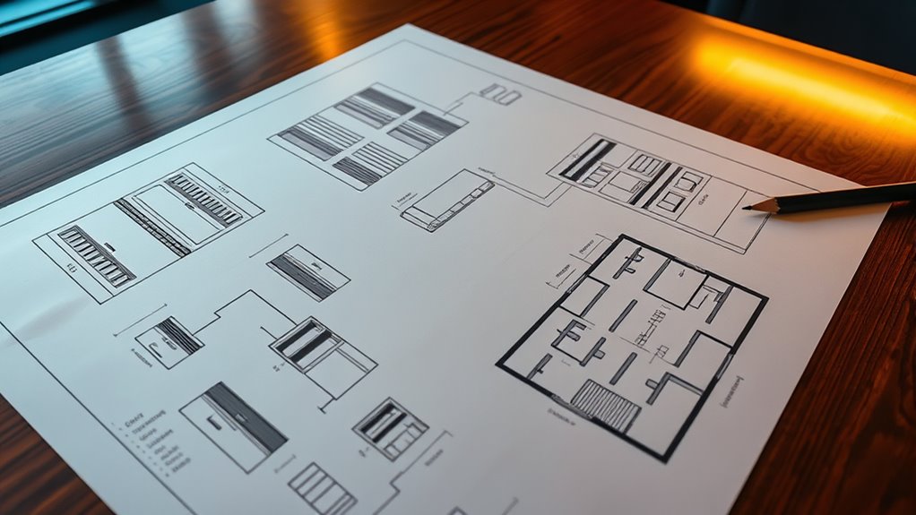 You should place your hidden rooms where they blend seamlessly, like behind a bookshelf, under stairs, or inside closets. These locations allow for discreet secret door mechanisms and concealed entry points that remain unnoticed. By choosing spots near common areas or bedrooms, you guarantee easy access while maintaining privacy. This placement maximizes safety, keeps the safe room hidden, and provides peace of mind when you need it most.