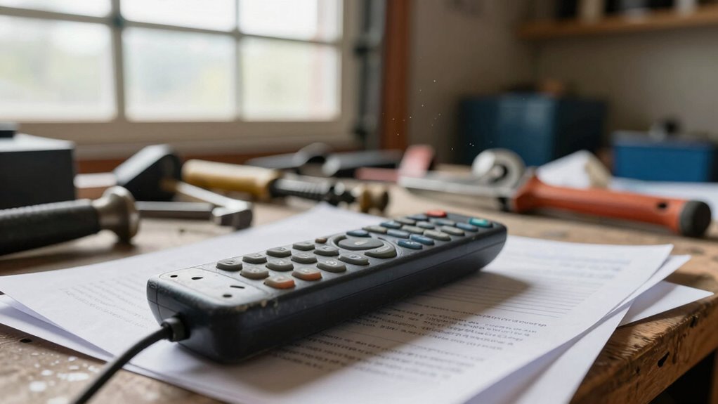 Since remote batteries can lose power without warning, it’s important to check them regularly to verify your garage door operates smoothly. A weak remote battery can prevent your remote from functioning properly, especially if it’s not correctly positioned in its remote placement. To guarantee reliable operation, consider these steps:
