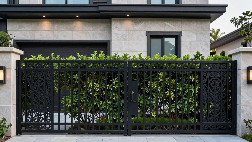 Did you know that natural barriers like strategic plantings can increase home security by up to 60%? You can use landscaping to enhance privacy by planting dense shrubs or tall trees near windows and fences. These strategic plantings create a visual barrier, making it difficult for outsiders to see inside. Incorporate thorny bushes or layered greenery to reinforce your privacy while maintaining an attractive, natural look around your home.