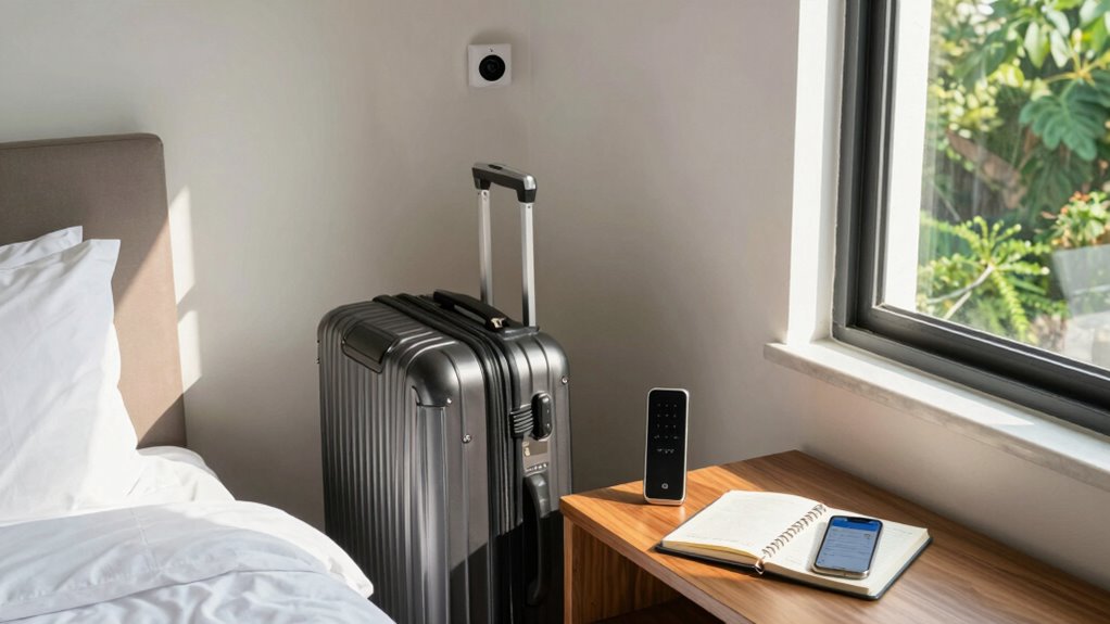 Think of your travel security as a trusty shield. Affordable devices like portable door alarms, RFID-blocking wallets, and mini safes act as your digital armor. Pair them with travel insurance and keep emergency contacts handy—your safety squad. These simple tools help protect your valuables and information without breaking the bank, ensuring you’re prepared for any unexpected twist on your adventure.