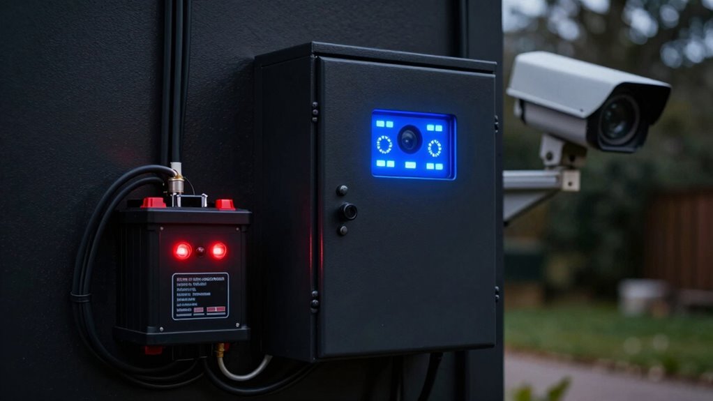 Are you confident that your backup power sources are ready to kick in during an outage? Regular battery maintenance is vital to ensure your security system stays operational when the power goes out. Check the batteries for corrosion, proper connections, and replace them if they show signs of wear or are past their lifespan. Additionally, review your power source selection to guarantee it’s reliable and suited for your needs. Use testing tools to verify that your backup batteries hold a charge and activate promptly when needed. Keep a schedule for these checks and document your results. Proper maintenance of batteries and informed power source choices are key to maintaining your security system’s reliability during unexpected outages.