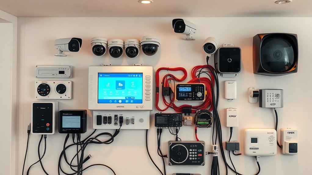 Redundancy can sometimes cause false alarms or system malfunctions if the backup systems aren’t properly configured or synchronized. When multiple sensors or alarm layers trigger simultaneously, it might lead to confusion and false alerts. To avoid this, you should regularly test and calibrate your redundant systems, ensuring they work harmoniously. Proper setup minimizes false alarms and keeps your home security reliable and effective.