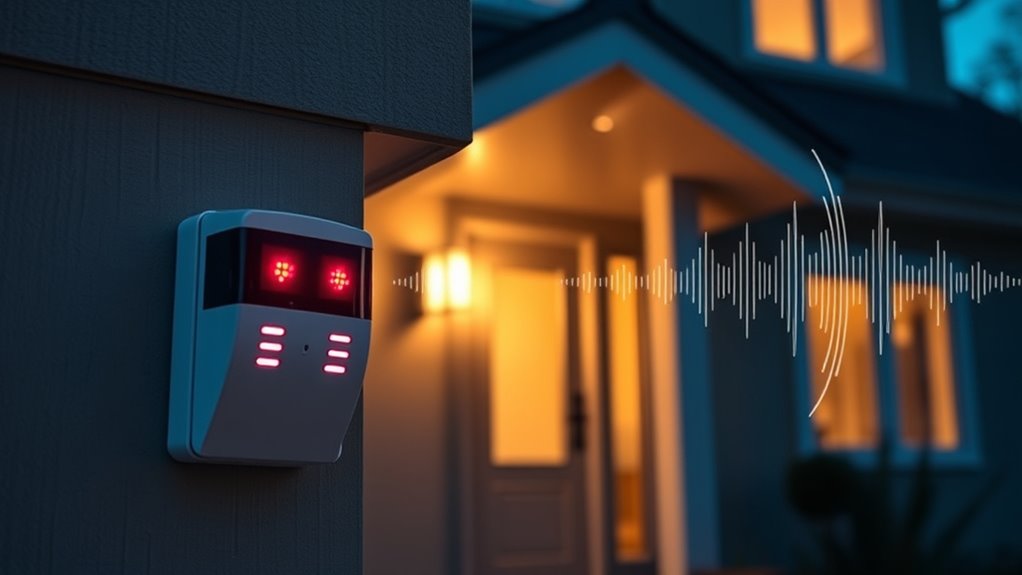 Signal jamming can disrupt your home alarm’s ability to send alerts, making your system “deaf” during emergencies. It blocks communication signals intentionally or through electronic interference, preventing alarms from alerting you or authorities. Combined with power disruptions, jamming can leave your home unprotected when you need it most. Understanding how these threats work helps you plan better defenses, so you can stay one step ahead of potential vulnerabilities—if you want to learn how to protect yourself effectively, keep exploring.