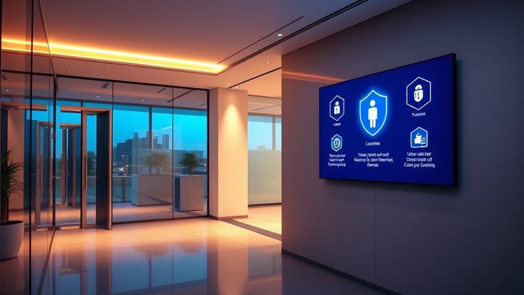 To create adaptive security modes based on time of day, you should implement a flexible system that adjusts access controls and authentication methods according to risk levels during different periods. During peak hours, use multi-factor authentication and restrictive policies, while off-hours can feature simpler security measures like single sign-on. Automating these adjustments guarantees continuous protection without disrupting users. If you want to learn how to design these dynamic shifts effectively, keep exploring further methods and best practices.