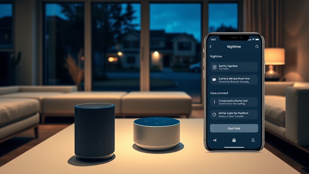 Your routines are like delicate locks—secure, but not impenetrable. Voice authentication adds a layer of protection, making it harder for outsiders to hijack your commands. Routine encryption further shields your data from prying eyes. While no system is invincible, combining voice authentication with robust encryption considerably reduces hacking risks, giving you peace of mind and a safer nighttime environment. Stay vigilant, and regularly update your security measures.