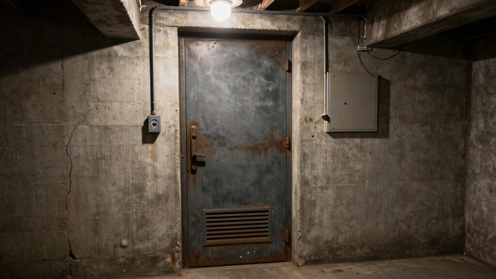Reinforcing your utility door locks is a crucial step in protecting your basement from unauthorized access. Upgrading locks enhances security and deters intruders. Consider lock upgrade strategies like installing deadbolts or security bars. To visualize, here’s a quick comparison: