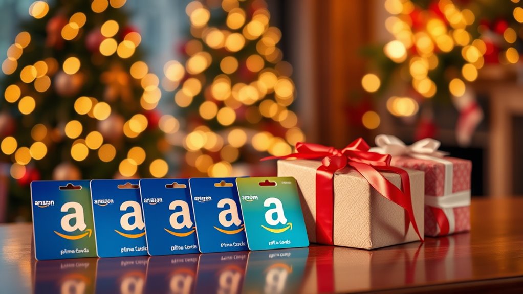 If you’re looking to surprise someone with a 3-month Amazon Prime gift, I recommend considering options like digital gift cards, Prime Video, or streaming memberships, which offer instant access to movies, TV shows, and exclusive deals. These gifts are flexible, budget-friendly, and perfect for different interests. To find the best fit, think about the recipient’s shopping and media habits. Keep going, and you’ll discover even more options to delight your loved ones.