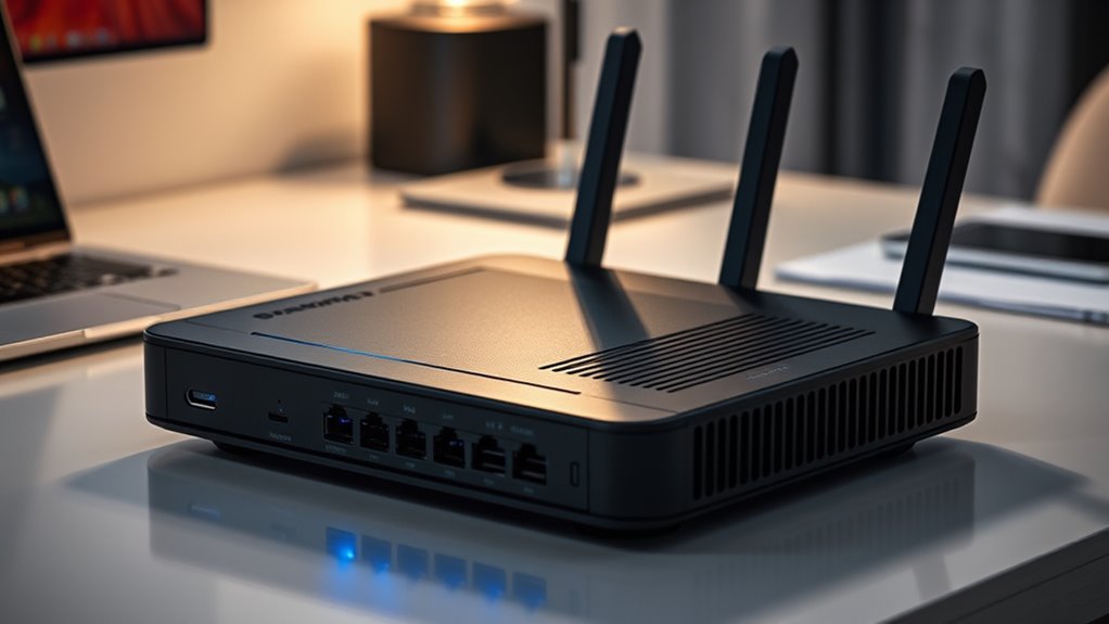 Choosing the right DSL modem router combo is like steering a modern-day labyrinth—security, speed, and reliability are your guiding stars. As I’ve explored, selecting a device rooted in robust technology ensures your digital kingdom remains safe, much like Theseus in the Minotaur’s maze. With the right gear, you can confidently traverse the web’s winding corridors, knowing you’re protected and connected, steering clear of the shadows lurking in the digital darkness.