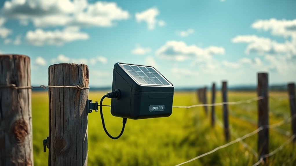 Solar chargers are suitable for most types of livestock, including cattle, horses, and sheep. I’ve used them myself and found they work well, especially in sunny areas. However, I recommend checking the voltage and fencing requirements for your specific animals to make certain of safety and effectiveness. For larger or more stubborn livestock, sometimes a higher-powered solar charger is necessary. Overall, they’re a reliable, eco-friendly option for managing different types of livestock.